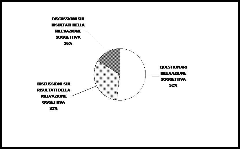 - per quanto riguarda quest’ultima fattispecie (il 26% dei lavoratori coinvolti in momenti specifici) gli intervistati hanno risposto a due diverse domande finalizzate ad esplorare più approfonditamente le modalità di tale coinvolgimento dei lavoratori da cui emerge che le aziende che hanno coinvolto i lavoratori nella valutazione della percezione e in particolare in questionari di rilevazione soggettiva sono il 52%, in discussioni sui risultati della rilevazione oggettiva il 32%, in discussioni sui risultati della rilevazione soggettiva il 16%.