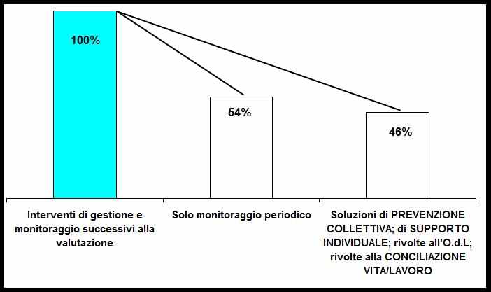 Sesta criticità: solo il 21% degli intervistati ha indicato che sono stati eseguiti interventi di gestione e programmati azioni di monitoraggio che si riducono al 10% dei casi, nelle situazioni in cui era stata effettuata anche la valutazione della percezione dei lavoratori. |