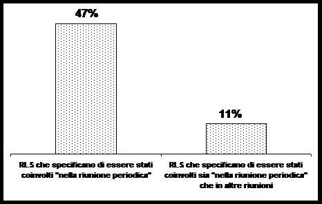 - per il restante 70%, che risponde di essere stato coinvolto come Rls, il 47% fa riferimento alla riunione periodica, mentre solo l’11 % indica di essere stato coinvolto sia nell’ambito della riunione periodica che di altre riunioni.