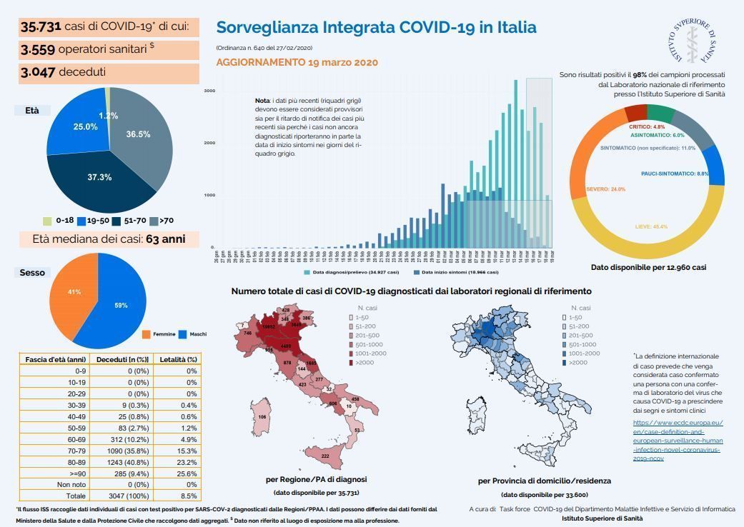 20/03/2020: COVID-19: i dati al 19 marzo
