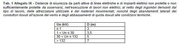 Il documento, che rimanda anche alla consultazione dei molti documenti prodotti sul tema dall’ ATS Brianza, ricorda, in conclusione, le distanze di sicurezza in relazione alla tensione (Allegato IX D.Lgs. N. 81/2008).