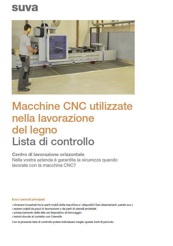 A ricordarlo è il recente aggiornamento di una lista di controllo prodotta da Suva, Istituto svizzero per l'assicurazione e la prevenzione degli infortuni, dal titolo “Macchine CNC utilizzate nella lavorazione del legno. Lista di controllo”.