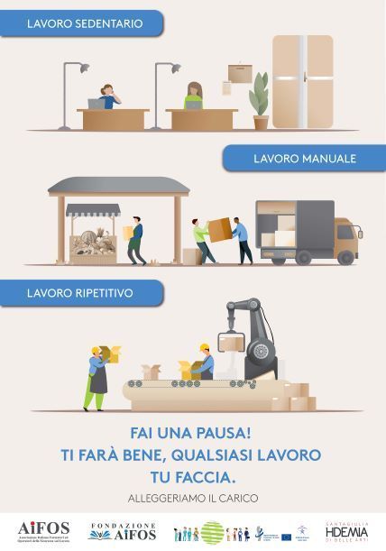 Pubblichiamo uno dei manifesti vincitori del concorso organizzato all’interno del progetto di collaborazione tra AiFOS e Accademia Santa Giulia e legato alla campagna “Ambienti di lavoro sani e sicuri 2020-2022 “Alleggeriamo il carico! Prevenzione delle problematiche muscolo scheletriche”