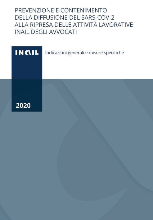 Inail, Direzione centrale prevenzione, “ Prevenzione e contenimento della diffusione del SARS-CoV-2 alla ripresa delle attività lavorative Inail degli avvocati. Indicazioni generali e misure specifiche”, documento a cura di Letizia Crippa e Andrea Rossi, edizione 2020 (formato PDF, 365 kB).