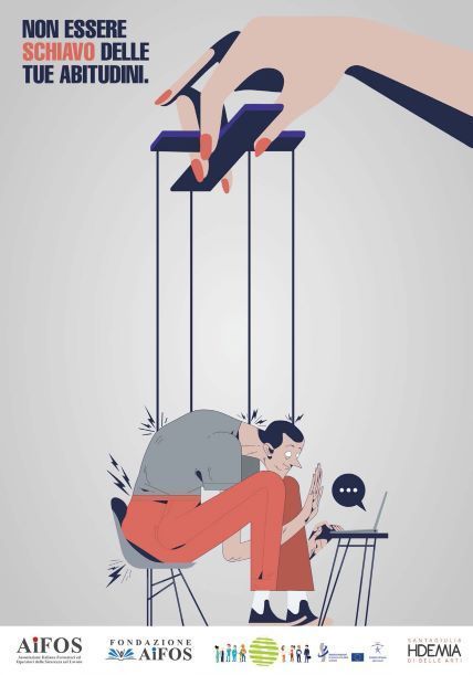 Lo slogan sottolinea questa ambivalenza in cui ciascuno può diventare schiavo delle proprie cattive abitudini.