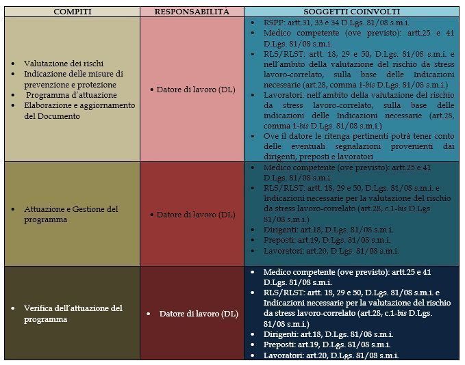 Si indica dunque che gli elementi centrali degli adempimenti previsti “sono la valutazione dei rischi e l’individuazione delle misure di prevenzione e di protezione per la cui realizzazione devono essere adottati tempi e metodi congrui con la valutazione effettuata”.