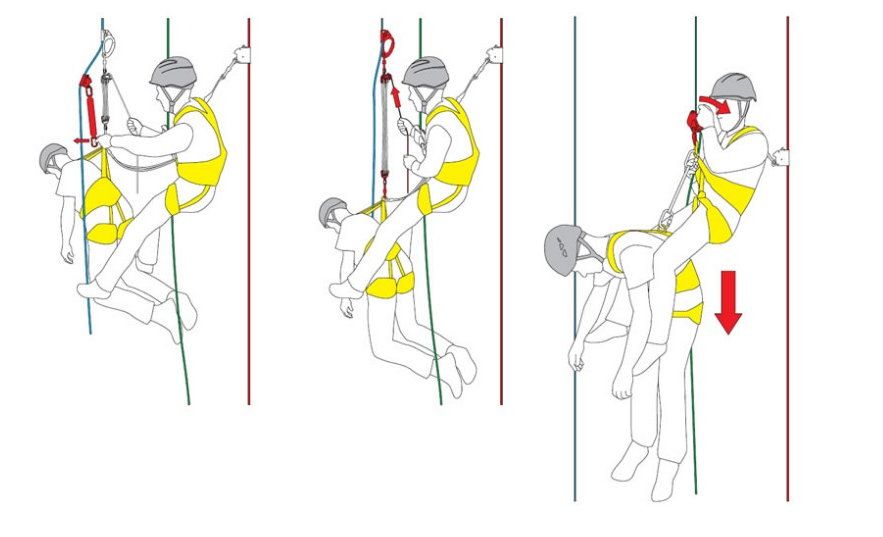 I lavoratori presenti devono intervenire allo scopo di portare in piano l’infortunato; se l’operazione non è possibile, è necessario raggiungerlo, alzargli le ginocchia o le gambe e sollevagli testa e torace. Dopo il recupero la vittima deve restare seduta con le gambe piegate e sotto sorveglianza. Per effettuare le manovre di evacuazione/autosoccorso sono a disposizione kit appositi contenenti tutte le attrezzature necessarie. Queste operazioni di sicurezza che vengono applicate in situazioni di emergenza (quindi non routinarie) devono essere conosciute dai lavorati tramite la formazione e addestramento che ricevono dal datore di lavoro ( art. 37, D.lgs. 81.08).