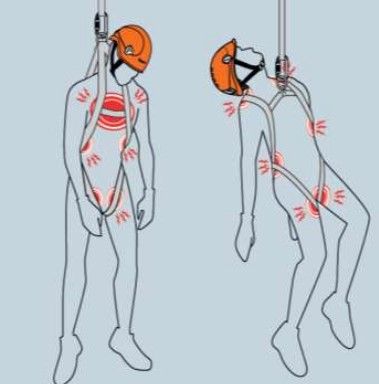 - La sospensione inerte che, a seguito di perdita di conoscenza, può indurre la cosiddetta “patologia causata dalla imbracatura” o “sindrome da sospensione”, che consiste in un rapido peggioramento delle funzioni vitali in particolari condizioni fisiche e patologiche.