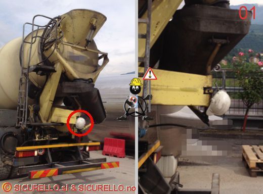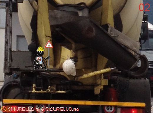 Davvero incontentabile o forse no. Il problema è che l’autista dell’ autobetoniera delle foto di oggi, il casco lo usa in maniera scorretta. Dopo essere arrivato in cantiere, mentre attende l’arrivo del suo turno per scaricare il calcestruzzo, aggancia il casco ai meccanismi di rotazione della “canala di scarico” e poi via verso il punto di consegna del materiale con il casco appeso.