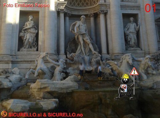 Più volte la cronaca ci narra di situazioni specifiche (ad esempio non molti anni fa alcuni soggetti tra i quali il committente ed il coordinatore per la sicurezza vennero chiamati a rispondere del danneggiamento di alcuni affreschi a seguito del posizionamento degli ancoraggi di un ponteggio di facciata) e proprio le foto di oggi ci illustrano la difficoltà nell’adottare idonee misure di sicurezza a protezione dei lavoratori impegnati nella manutenzione di una storica e famosa fontana settecentesca.