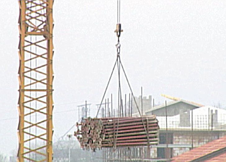In un cantiere, a causa di un forte vento, non è possibile utilizzare la gru per il sollevamento e montaggio di alcuni pannelli metallici di casseratura per un muro. Il capo cantiere decide pertanto di eseguire altri lavori, anche con l'ausilio della gru, fra i quali la rimozione di materiali presenti su una soletta al primo piano.