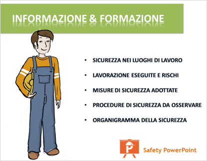 Una volta effettuata la valutazione dei rischi dell’Organizzazione in esame, in un unico click vengono generate tante presentazioni Power Point quante sono le Mansioni indicate all’interno del DVR.
