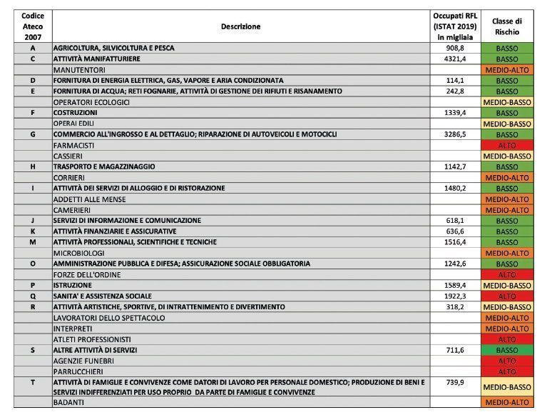 COVID-19: analisi dei rischi occupazionali e attività a maggior rischio