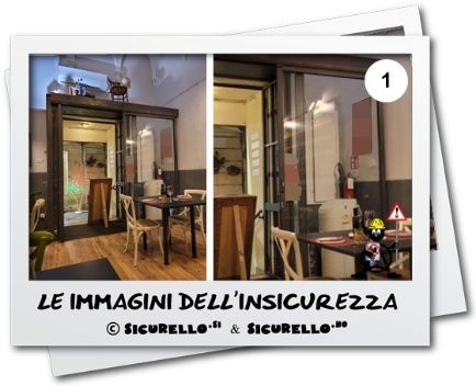 È si, le foto sono chiare: all’interno di una sala ristorante che si affaccia su pubblica via, è presente una bussola di ingresso con una porta scorrevole vetrata che separa la sala dalla breve scala di accesso.