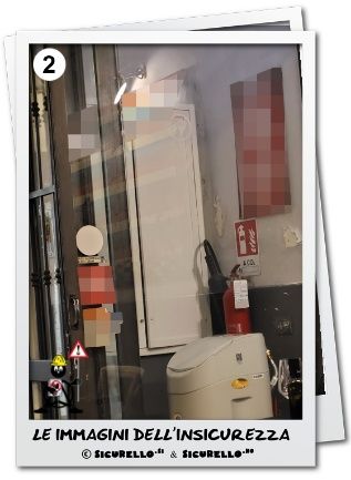 - se la porta è aperta, l’unico estintore visibile nel locale risulta irraggiungibile,