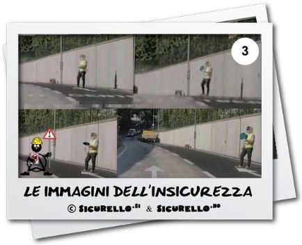 Sicuramente il pericolo è di perdere di vista il traffico (in quel momento per fortuna ridotto, ma pochi minuti dopo con numerosi camion in uscita) con rischi sia per gli utenti della strada che per gli incauti operatori.