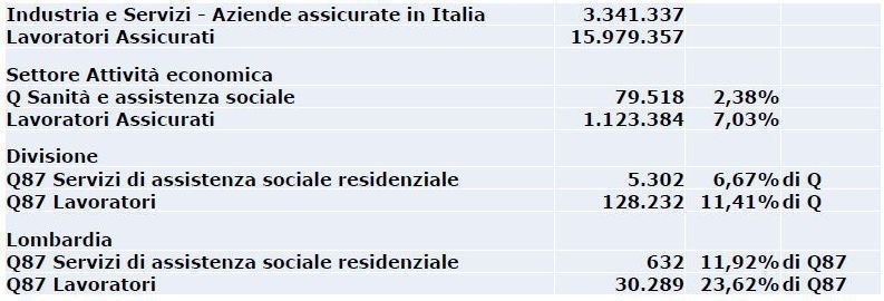 In “Procedura per la rilevazione degli infortuni e quasi infortuni nel settore socio assistenziale: i risultati del primo anno di sperimentazione”, a cura dell’Ing. Carmine Esposito (D.R. Lombardia – CONTARP Inail) sono riportati innanzitutto diversi dati tratti dalla banca dati statistica dell’Inail, sia sui lavoratori e le aziende del settore, che sugli infortuni di lavoro indennizzati.
