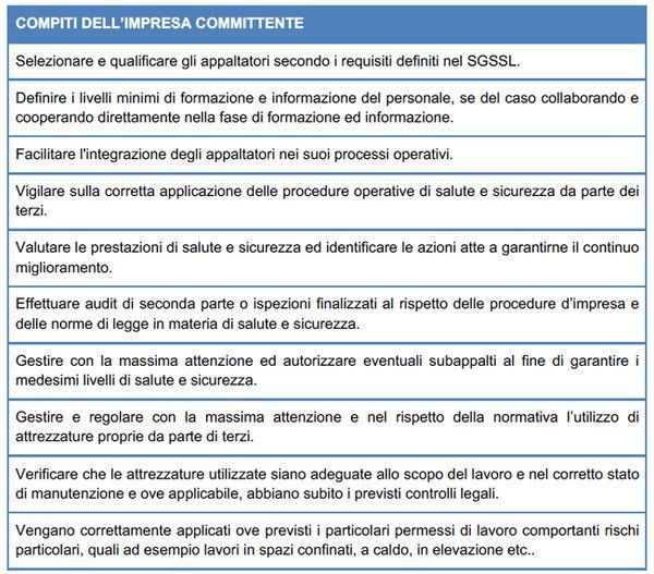 Riprendiamo poi dal documento una scheda con i compiti dell’impresa committente: