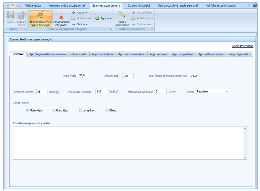 - inserire ad ogni visita i dati dell’esame obiettivo;