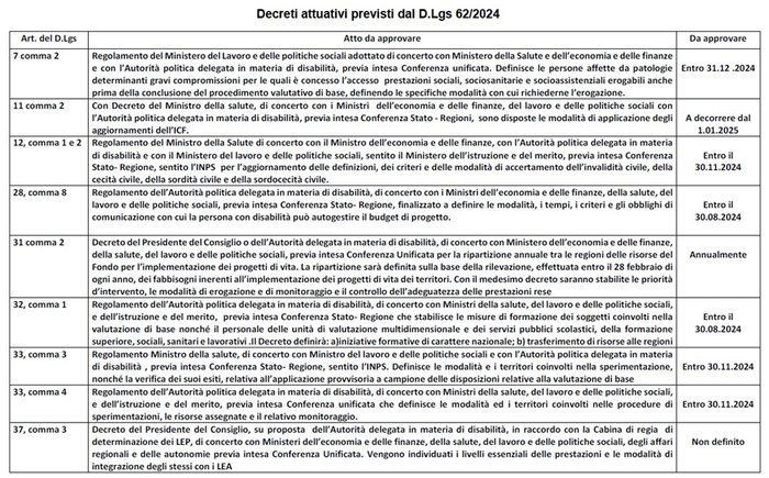 Ci permettiamo di rimettere i decreti attuativi previsti dalla D.lgs. n. 62/2024 e lasciamo a lettore verificare a quanti di essi è stato dato effettivamente corso nel rispetto dei tempi.