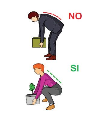 - Eseguire il sollevamento con la schiena in posizione eretta e con le braccia rigide in modo tale che lo sforzo sia sopportato prevalentemente dai muscoli delle gambe”.