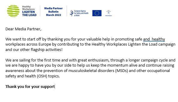 Come è stato il lavoro del nostro giornale per la campagna 2020-2022 dell’Agenzia europea per la sicurezza e la salute sul lavoro (EU-OSHA) dal titolo “Ambienti di lavoro sani e sicuri. Alleggeriamo il carico!”?
