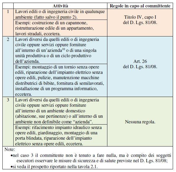 Riportiamo, infine, la tabella 2.1 che contiene un prospetto delle regole che deve applicare il committente:
