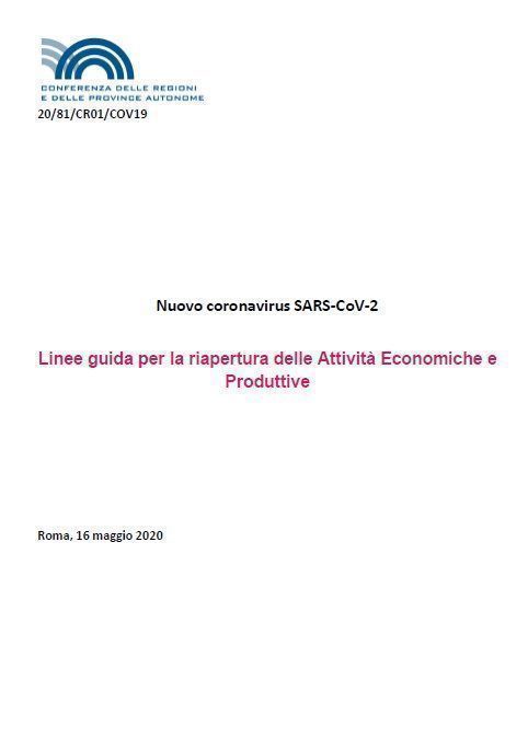 Conferenza delle Regioni e delle Province autonome, “ Nuovo coronavirus SARS-CoV-2. Linee guida per la riapertura delle Attività Economiche e Produttive”, documento del 16 maggio 2020, 20/81/CR01/COV19 (formato PDF, 352 kB).