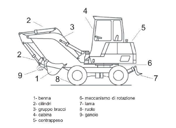 - Verificare la presenza di un dispositivo di bloccaggio di sicurezza dell’impianto idraulico (comandi) per inibire ogni movimento del braccio, della benna e la rotazione della torretta