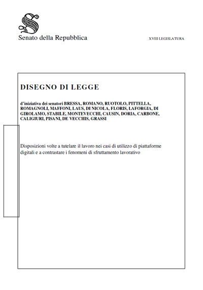 - Disegno di legge: tutelare il lavoro nei casi di utilizzo di piattaforme digitali