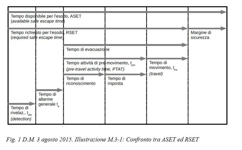 Questo tempo viene definito tempo richiesto per l’esodo (RSET: Required Safe Escape Time) ed è composto da diverse fasi:
