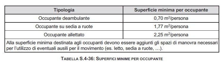 - “la minima superficie lorda è calcolata tenendo in considerazione le superfici minime per occupante di tabella S.4-36”.
