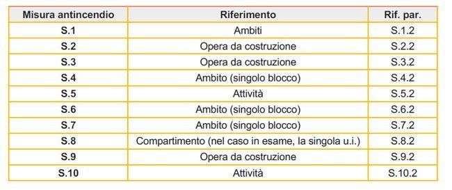 Sono poi riportati vari altri dettagli e si ricorda che per ciascuna delle dieci misure costituenti la strategia antincendio “si stabilirà, in relazione all’attribuzione dei pertinenti livelli di prestazione, cosa si va a progettare, misura per misura (ambiti, opere da costruzione, attività e compartimenti); nel caso in esame, in esito alle risultanze della valutazione del rischio, si forniscono i seguenti riferimenti”: