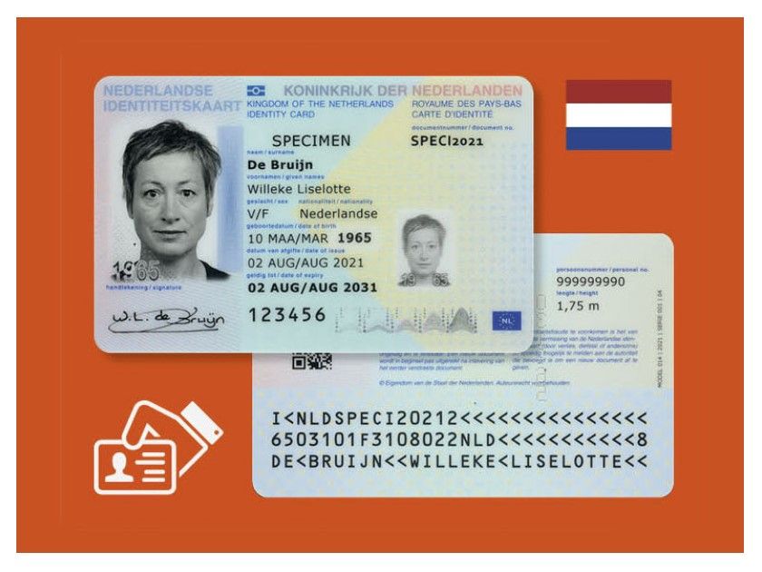 La nuova carta identità olandese è stata presentata all’inizio di agosto 2021 e contiene un chip senza contatti, che è conforme alle specifiche ICAO. Essa inoltre dispone di nuove misure di sicurezza, come ad esempio una bandiera europea, un codice QR che consente l’accesso al numero unico di identificazione, attribuito ad ogni cittadino olandese, due impronte digitali del titolare ed altre caratteristiche di sicurezza, che appresso illustriamo.