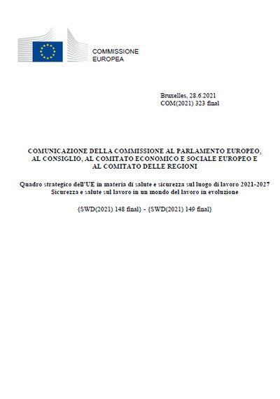 Commissione Europea - Comunicazione della Commissione al Parlamento europeo, al Consiglio, al Comitato economico e sociale europeo e al Comitato delle regioni - Quadro strategico dell'UE in materia di salute e sicurezza sul luogo di lavoro 2021-2027 - Sicurezza e salute sul lavoro in un mondo del lavoro in evoluzione – SWD 2021.