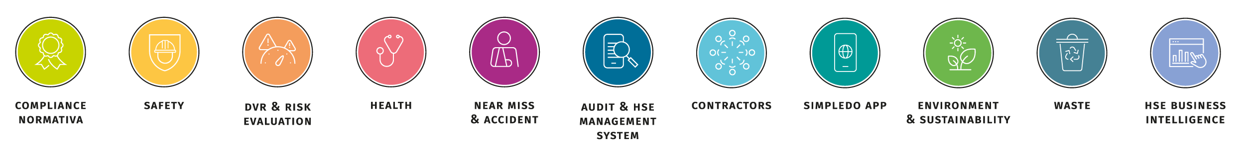 La copertura funzionale di Simpledo, infine, non si limita alla gestione dei near miss, ma comprende tutti i principali processi HSE aziendali:
