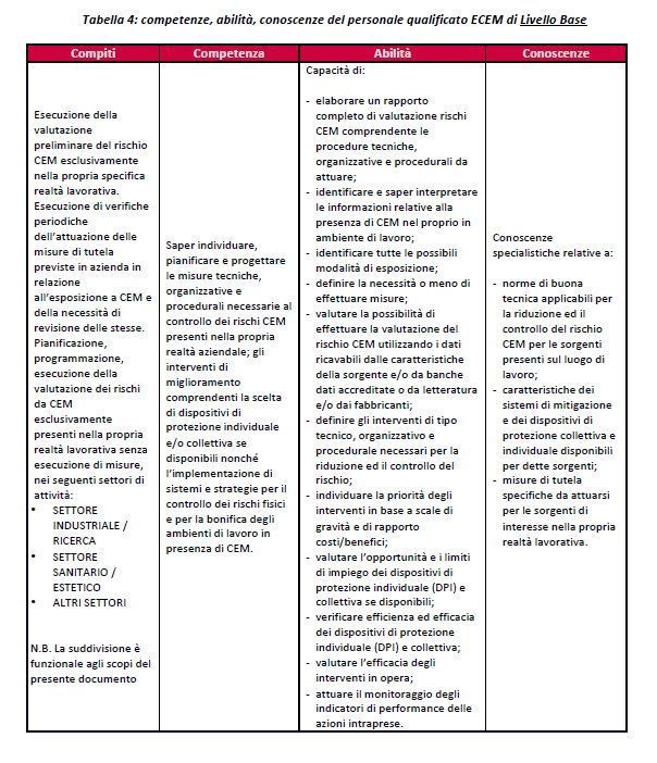 Si indica che i requisiti per il personale ECEM di Livello Base si intendono soddisfatti “dall'acquisizione delle competenze, delle abilità e delle conoscenze di cui alla tabella 4 e relativa formazione”.