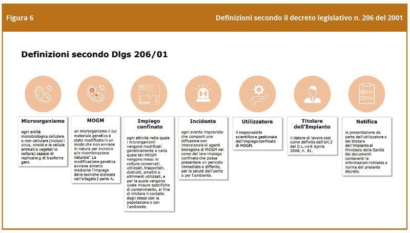 Si ricorda poi che in Italia la sicurezza delle attività comportanti l’utilizzo di microrganismi geneticamente modificati è garantita dall’operatività del decreto legislativo n. 206/2001.