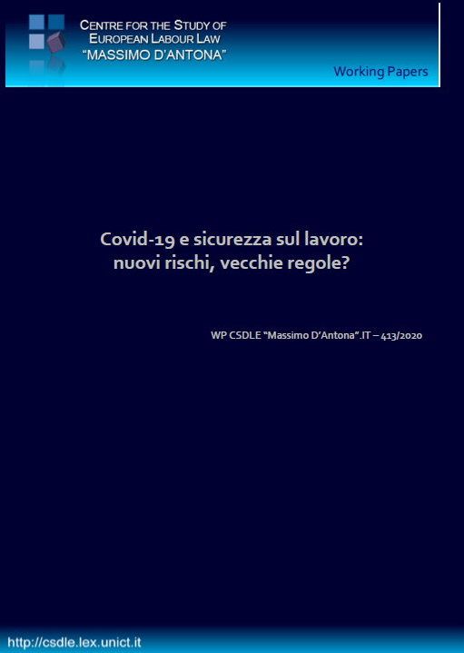 Centre for the Study of European Labour Law ‘Massimo D’Antona’, “ Covid-19 e sicurezza sul lavoro: nuovi rischi, vecchie regole?”, a cura di Gaetano Natullo (Università del Sannio), Working Paper - WP CSDLE “Massimo D’Antona”.IT – 413/2020 (formato PDF, 674 kB).