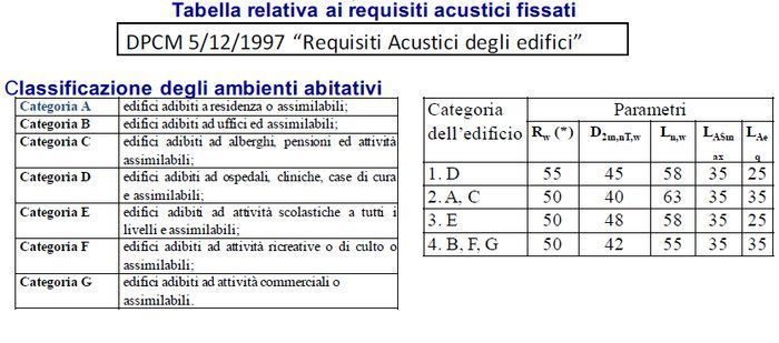 Riprendiamo dal documento una tabella relativa ai requisiti acustici: