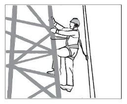 - raggiunta un’altezza pari a quella consentita dal cordino ausiliario, si vincola al sostegno con il cordino di posizionamento, utilizzando gli attacchi laterali o l’attacco ventrale della imbracatura;