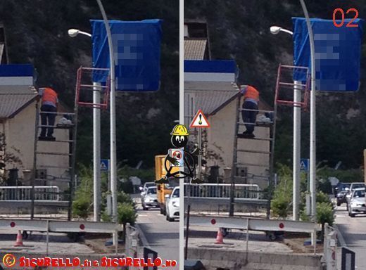 -   totale assenza di delimitazione dell’area alla base del trabattello (con esclusione di due coni segnalatori).