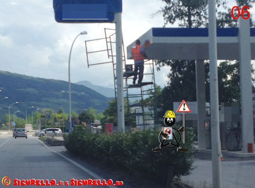 Il titolo delle immagini dell’insicurezza di oggi poteva essere proprio questo ed infatti le fotografie ci mostrano dei classicilavori di riverniciatura del bordo di una pensilina di un distributore di carburanti.