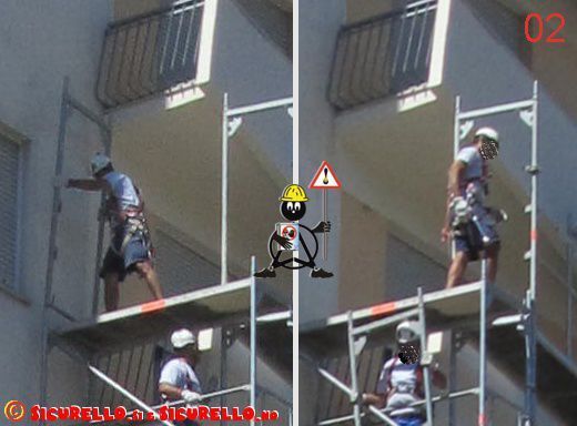 Peccato che guardando un po’ meglio ci si rendeva conto che il lavoratore più esposto, ovvero quello che lavorava in zone non protette del ponteggio e perciò ad elevato rischio di caduta dall’alto (indicativamente 10-12 metri), indossava l’ imbracatura, ma che essa non era collegata a nessun punto di ancoraggio.