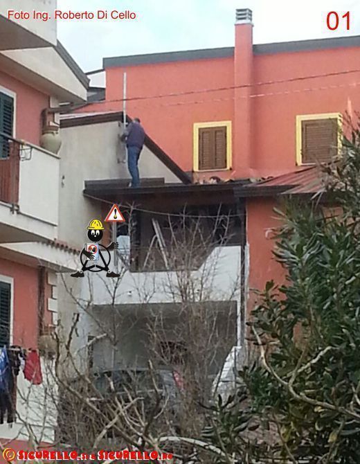 Anche in questo caso l’addetto è tranquillamente posizionato in copertura, senza l’adozione della benché minima protezione anticaduta.