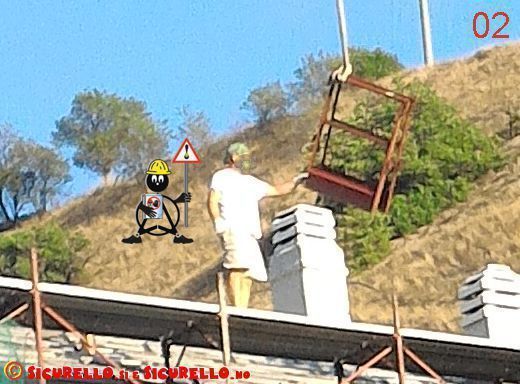 L’assenza di ogni tipo di D.P.I., unito alla scorretta procedura di lavoro, porta il lavoratore ad un elevato rischio di infortunio ed ancora una volta ci chiediamo se il lavoratore, i colleghi presenti ed il datore di lavoro, siano inconsapevoli di ciò o sfidino la sorte.