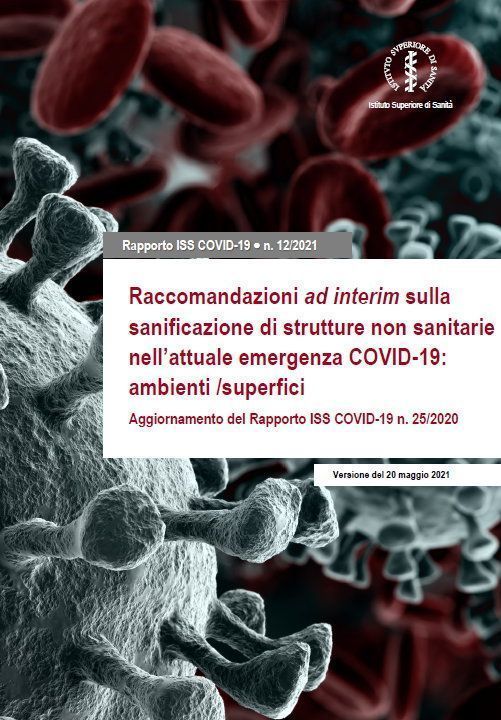 Draisci R, Attias L, Baldassarri L, Catone T, Cresti R, Fidente RM, Marcello I, Buonanno G, Bertinato L., “ Raccomandazioni ad interim sulla sanificazione di strutture non sanitarie nell’attuale emergenza COVID-19: ambienti/superfici. Aggiornamento del Rapporto ISS COVID-19 n. 25/2020. Versione del 20 maggio 2021”, Roma: Istituto Superiore di Sanità; 2021 - Rapporto ISS COVID-19, n. 12/2021 (formato PDF, 1.96 MB).