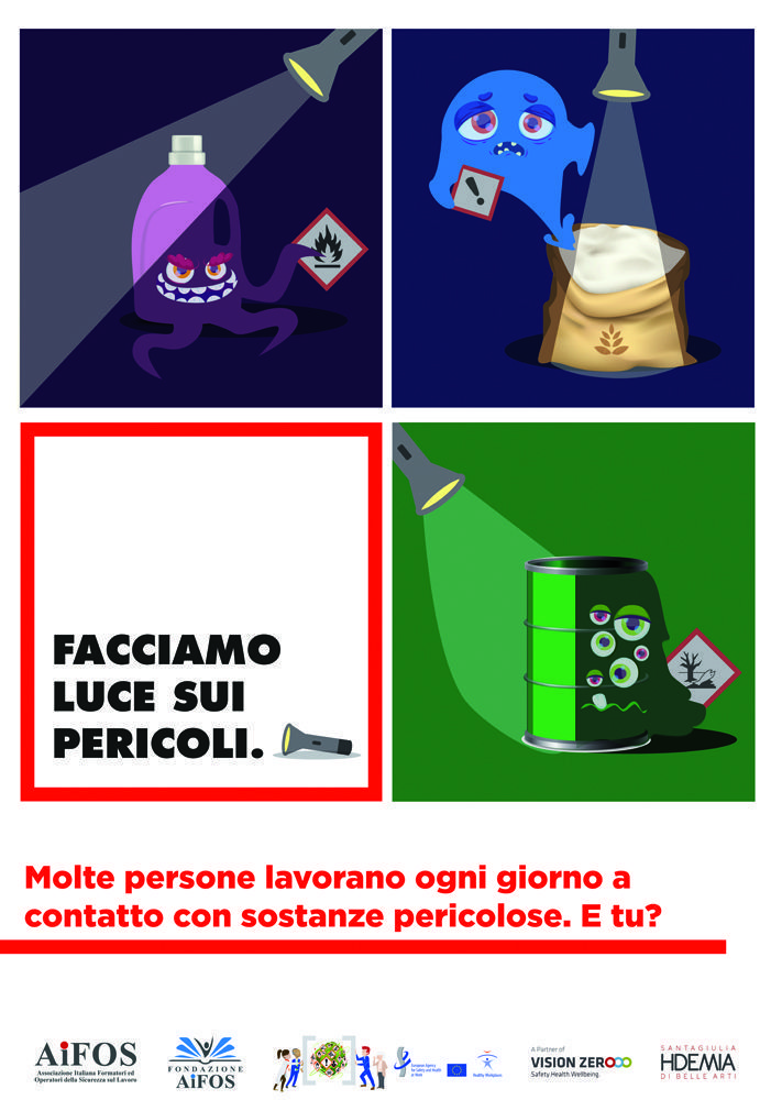 Pubblichiamo uno dei manifesti del concorso organizzato all’interno del progetto di collaborazione tra AiFOS e Accademia SantaGiulia e legato alla campagna “Ambienti di lavoro sani e sicuri 2018-2019 “Salute e sicurezza negli ambienti di lavoro in presenza di sostanze pericolose”.