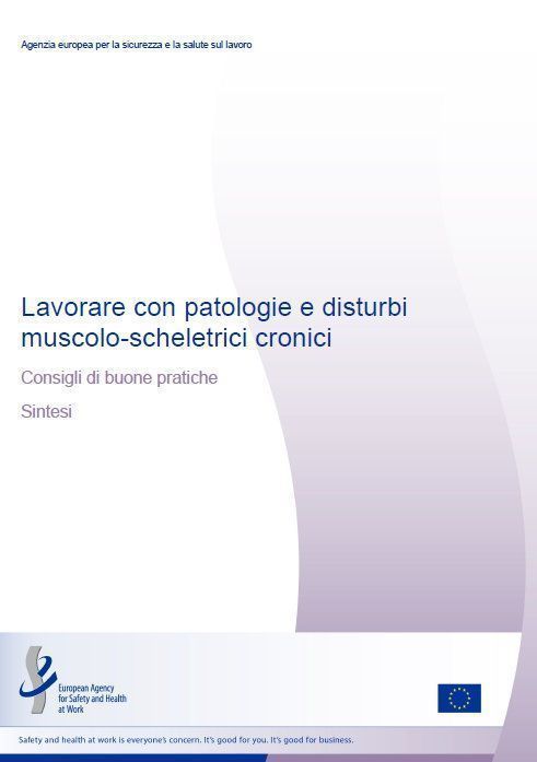Agenzia europea per la sicurezza e la salute sul lavoro, “Lavorare con patologie e disturbi muscolo-scheletrici cronici. Consigli di buone pratiche. Sintesi”, a cura di Joanne O. Crawford, Evanthia Giagloglou, Alice Davis, Richard Graveling (Institute of Occupational Medicine, IOM), Anthony Woolf (Royal Cornwall Hospitals NHS Trust, presidente di Arthritis and Musculoskeletal Alliance, ARMA), documento correlato alla campagna europea “Ambienti di lavoro sani e sicuri. Alleggeriamo il carico!”.