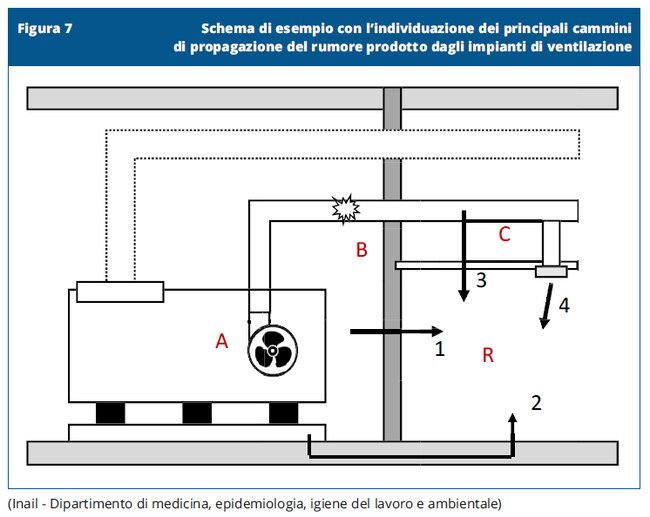 Per quanto riguarda poi il rumore aereo emesso dai condotti di areazione – continua il documento Inail - “invece occorre agire mediante l’utilizzo di canali aventi elevate proprietà di fonoisolamento oppure contenere delle condotte all’interno di un’intercapedine aventi proprietà di isolamento e assorbimento del rumore” (su questo aspetto il documento riporta molti altri dettagli).